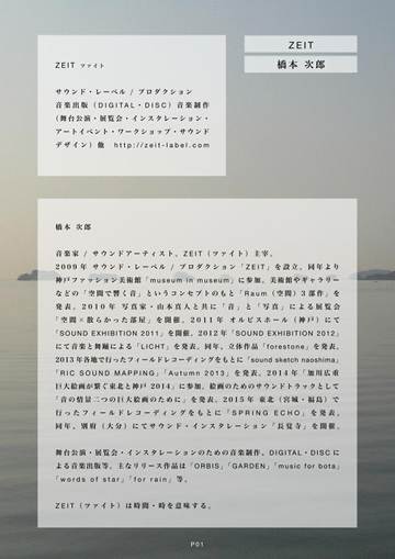 of star」(DISC)を紹介して頂いています。本作はデジタル販売の他に数量限定でのディスク販売(CDR)を行っています。ZEITのリリースページでは試聴(SoundCloud)も可能となっていますので、是非お聴きになって下さい。「words