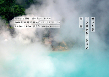 [TITLE] SOUND INSTALLATION "BEPPU" [DATE] 2016.11.25 (FRI) - 11.27 (SUN) [TIME] 13:30 - 18:00 [FEE] FREE [PLACE] CHOKAKUJI 2-2-14 Hamawaki, Beppu [PRODUCED BY] Jiro Hashimoto  [PRESENTED BY] ZEIT [PROGRAM] BEPPU ART MONTH 2015 PROGRAM [URL] http://zeit-label.com/info/beppu.html