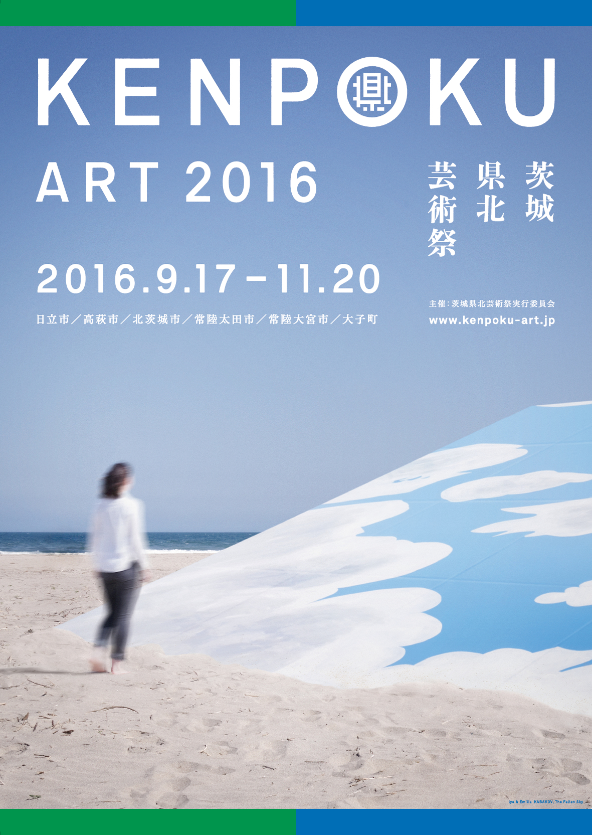 [NAME] KENPOKU ART 2016@[THEME] Sea, Mountains, Art!@[GENERAL DIRECTOR] Fumio Nanjo@[DURATION] 2016.09.17 (SAT) - 11.20 (SUN) 65 days@[VENUES] 6 cities in the northern Ibaraki Prefecture (Hitachi / Takahagi / Kitaibaraki / Hitachiota / Hitachiomiya / Daigo)@[ORGANIZERS] KENPOKU ART Executive Committee@[URL] http://www.kenpoku-art.jp