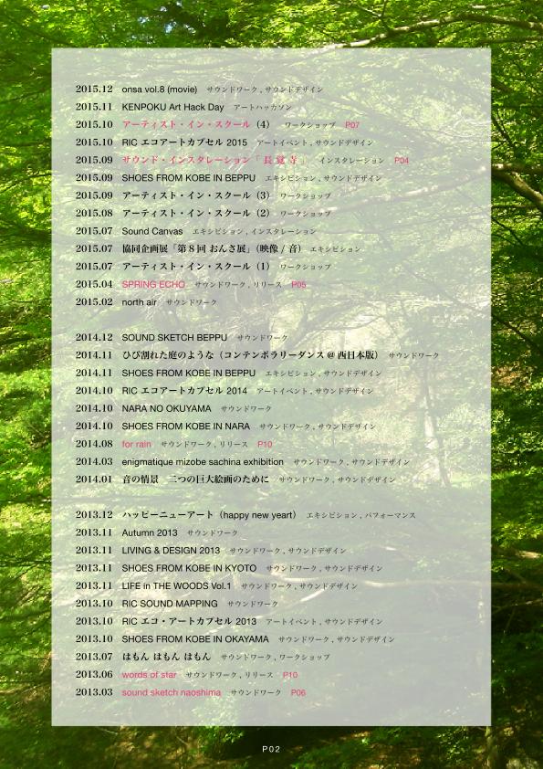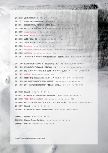 / 2013 [P03] 2012 / 2011 / 2010 / 2009 [P04] サウンド・インスタレーション「