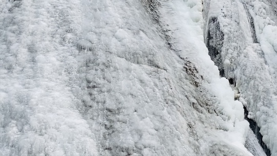 A video work inspired by river ice (frazil ice) forming on the surface of the Kuji River and the icefall of Fukuroda Falls.